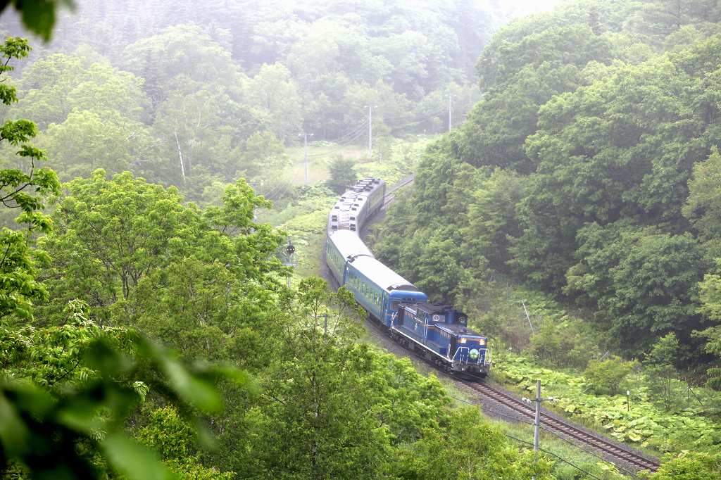 前日にロケハンした時は良い天気で夕日に輝く「スーパーおおぞら」を撮影十勝連峰も見えたが、翌日は小雨模様で視界も悪かったが午前中に撮った「スーパーおおぞら」。