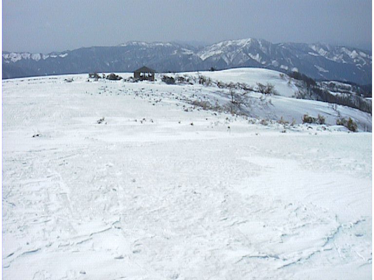 三ノ丸頂上より氷ノ山頂上、頂上小屋がはっきり見える。積雪期はここから1時間30分ぐらいはかかると思う。夏だと50分ぐらいの距離である。