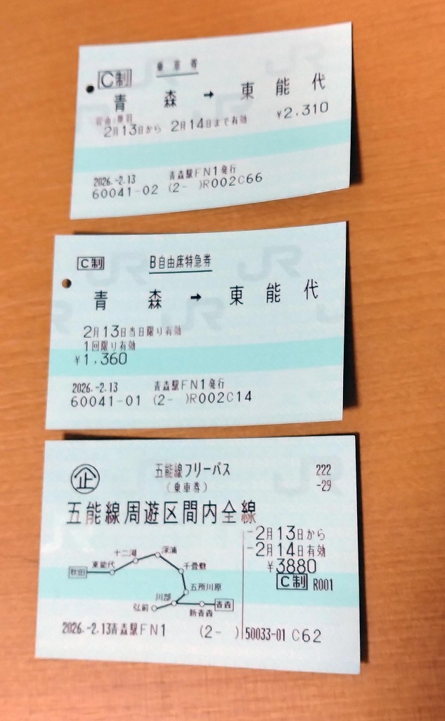 五能線の旅 青森9:04発→(奥羽本線つがる42号)→10:56着11:00発→(五能線普通列車)→川部15:05着 15:29発→青森16:19着 【2月13日】