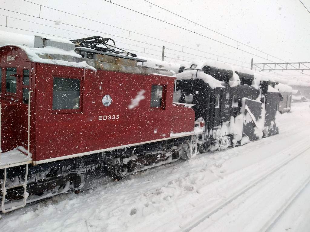 黒石駅のラッセル+プッシュ用ED機関車