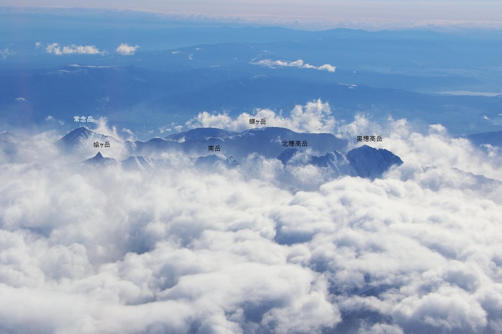 飛行機の窓から 槍・穂高連峰(北アルプス)