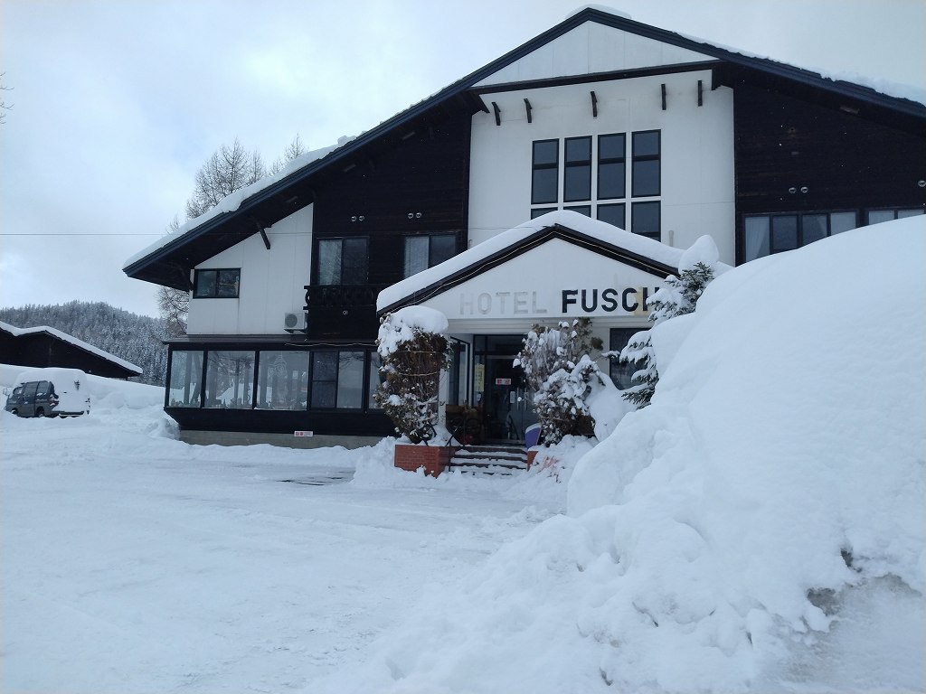 今回2泊お世話になったフィッシュさん、森吉スキー場に一番近く歩いても行ける場所で左のガラス張が食堂である。欧米人の方が多く宿泊されており私は空いていた和室に宿泊した。