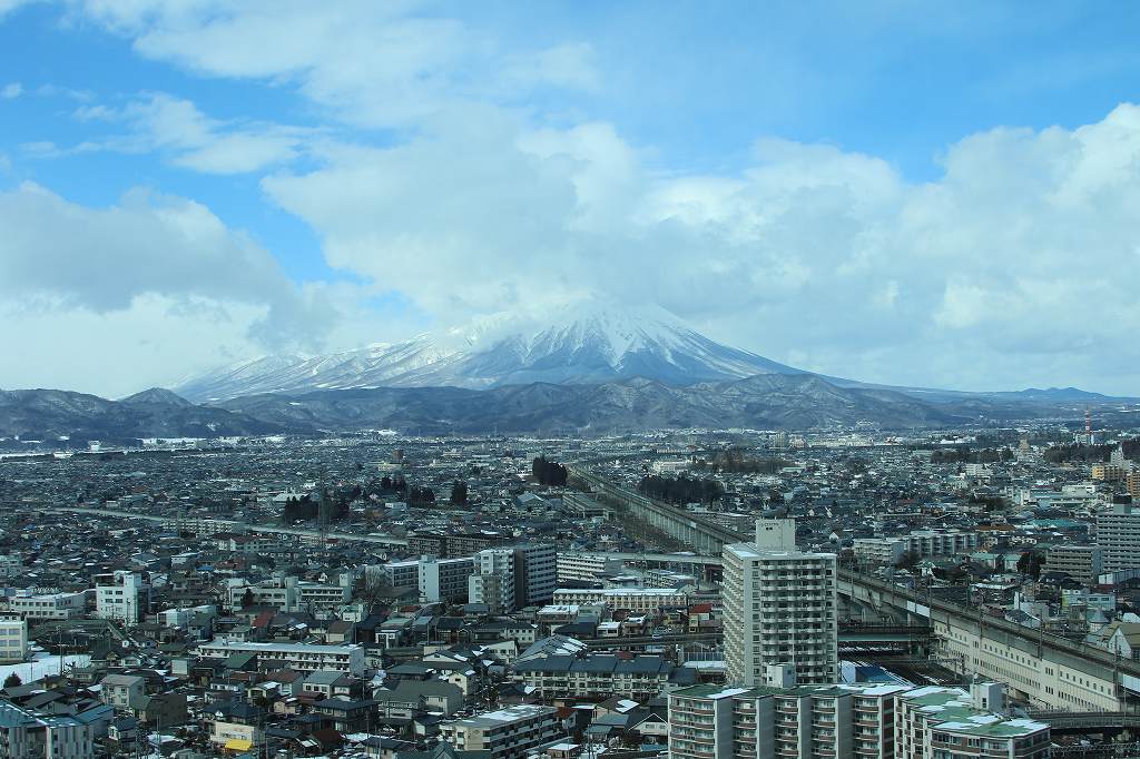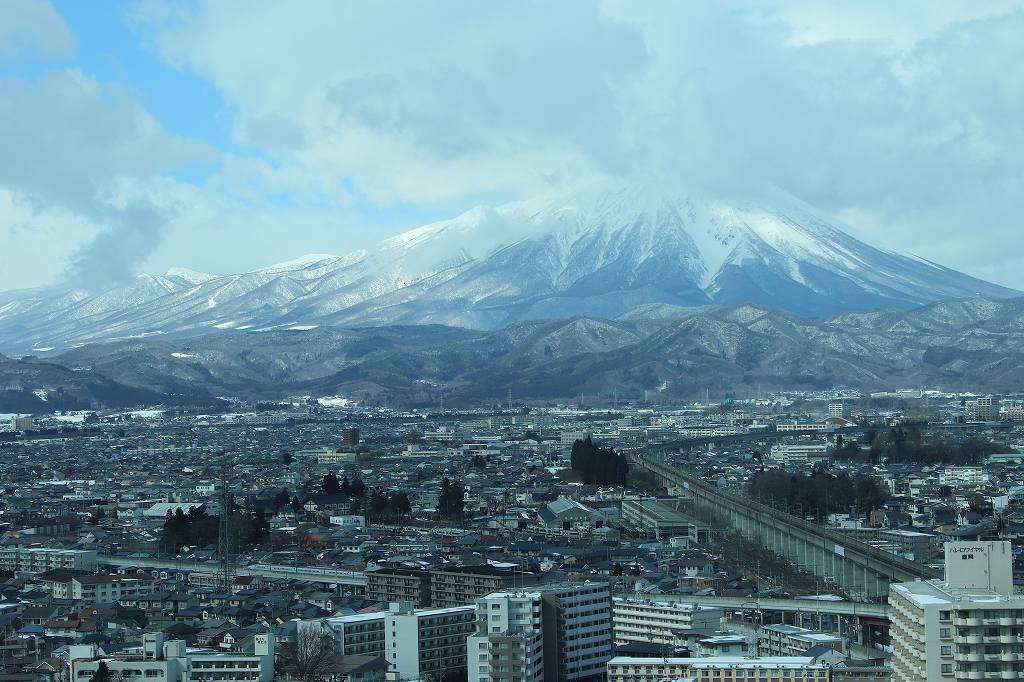 森吉山スキー場から帰って来て2022年に宿泊した盛岡に宿泊、翌日岩手山が撮りたくて展望台を探すと無料のマリオス展望室から撮影。