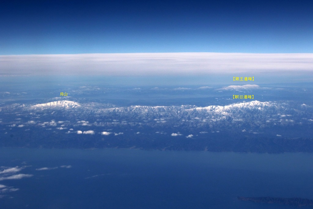 新千歳→伊丹便 日本海上空からは月山、朝日連峰、後方に蔵王連峰が望まれた。